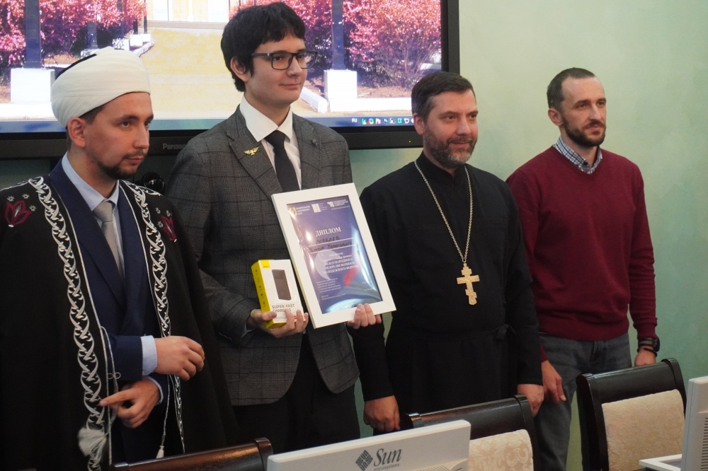В финальной встрече приняли участие победители отборочных этапов из ведущих вузов города: Владимир Костенко (ТОГУ), Влада Колесникова (Хабаровский институт инфокоммуникаций), Екатерина Анцыгина (Дальневосточный филиал РГУП), Тимур Лебедев и Сергей Еремин (ДВГМУ). Молодые люди представили свои доклады по сложным и современным темам: «Бог не из машины. Искусственный интеллект и религия» и «Наука и религия: антагонизм, сосуществование или взаимопомощь». Уровень выступлений был столь высоким, что жюри приняло решение не определять единственного победителя. Каждый из финалистов был отмечен грамотой и ценным призом за глубокий анализ и вклад в обсуждение.